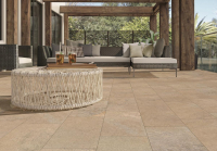 The different laying systems resting on grass, gravel and sand, laying with glue on screed or as raised flooring, allow the 2cm stoneware slabs to fit perfectly into contemporary landscapes and architectural contexts both private and public.