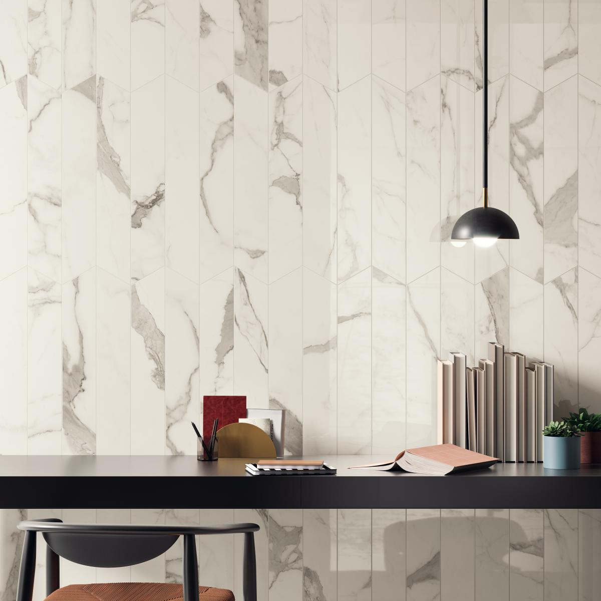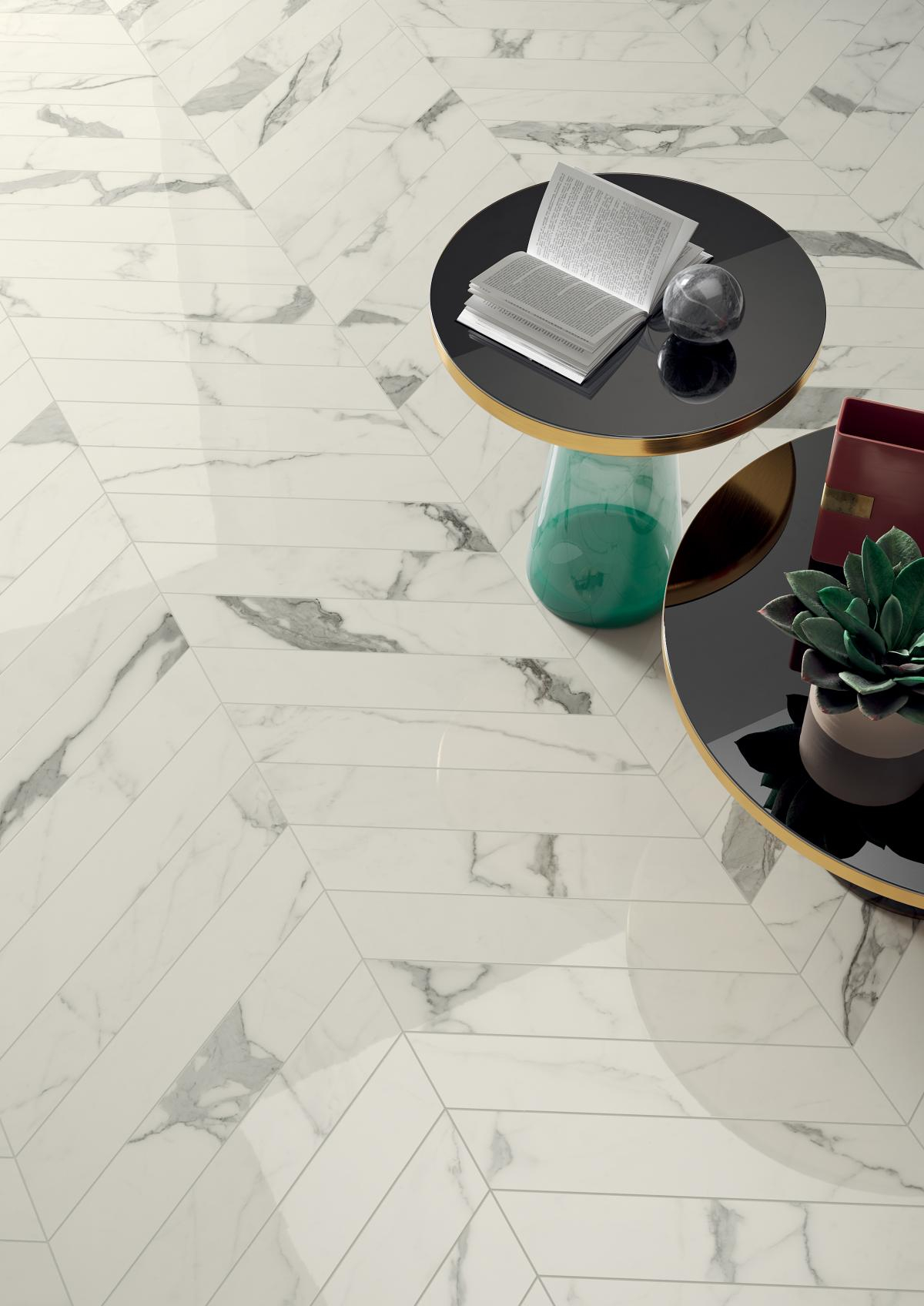 Flooring Blu style collection Elite size 10X60 colour Statuario battiscopa nascosto