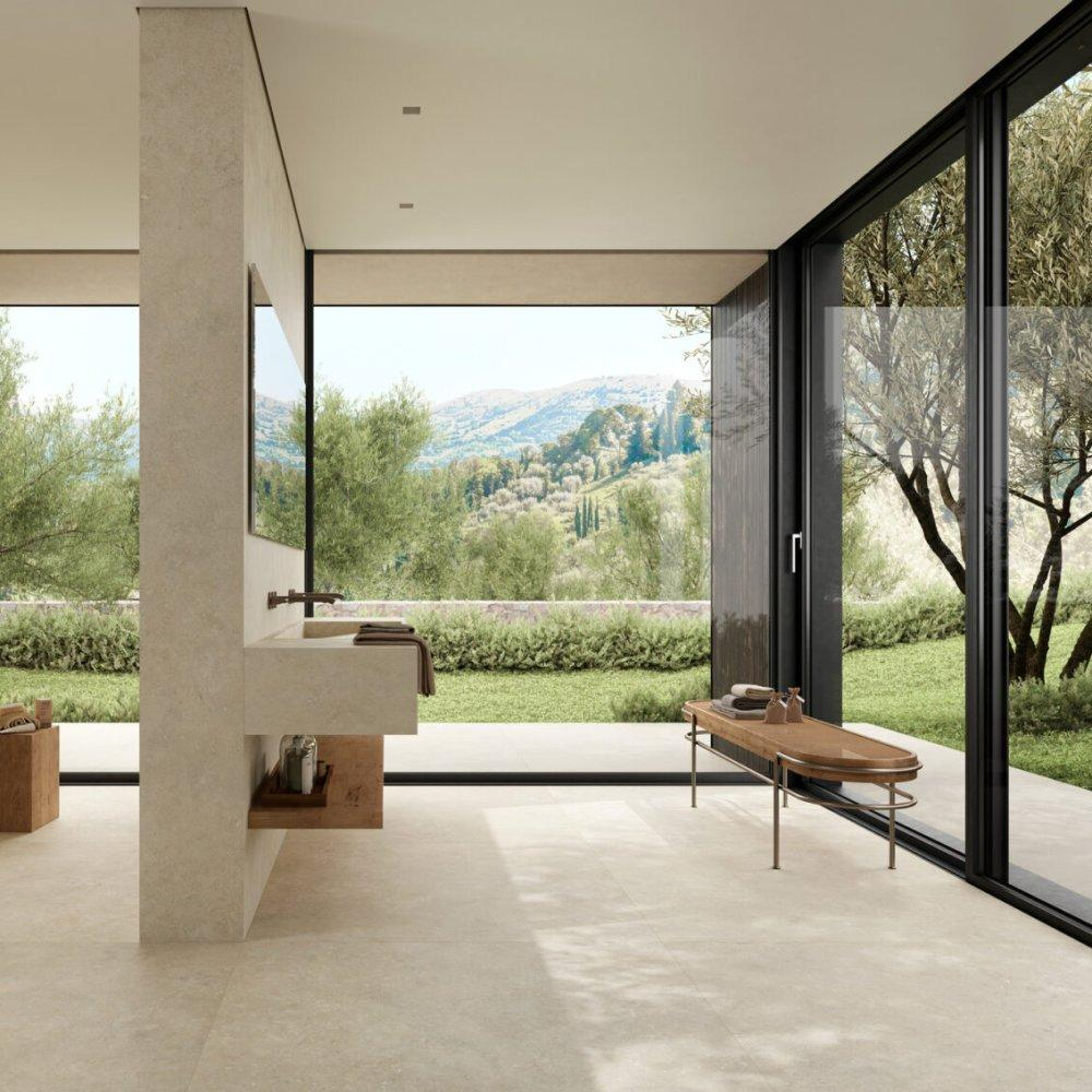 INSPIRED BY ROMAN STONE, THE SERIES IS IDEAL FOR BOTH OUTDOOR AND INDOOR SPACES, INCLUDING THE 20MM FORMAT FOR DRIVEABLE OUTDOORS. THE AVAILABLE COLORS ARE WHITE, BEIGE, AND GRAY.