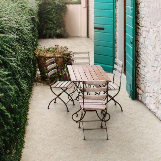 The elegance of terracotta, cement, and stone is combined in the Sentieri collection. The irregular edges add character to the design. With an R10 rating, it is suitable for outdoor use. The two formats can create unique layouts. The 60x60 cm 20mm format can be laid directly on grass, sand, or gravel.